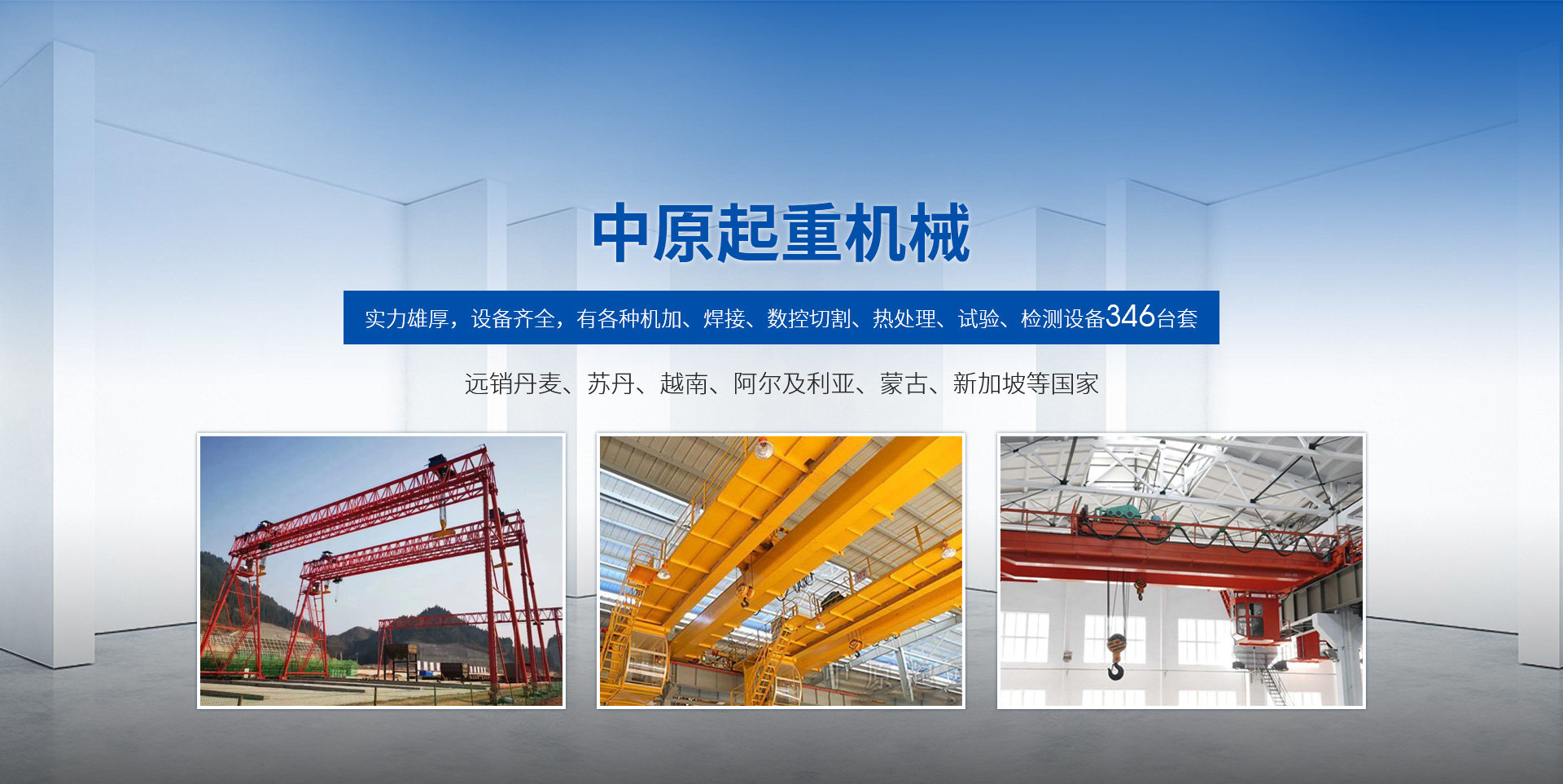 新鄉(xiāng)市中原起重機(jī)械有限公司成立于2000年,地處中原,輻射全國28個省市自治區(qū),設(shè)外埠經(jīng)銷處、辦事處268個。產(chǎn)品行銷工礦、建材、化工、冶金、電力、交通、鐵路、油田、港口等各個行業(yè)。遠(yuǎn)銷丹麥、蘇丹、越南、阿爾及利亞、蒙古、新加坡等國家。  公司實(shí)力雄厚,設(shè)備齊全,有各種機(jī)加、焊接、數(shù)控切割、熱處理、試驗、檢測設(shè)備7臺;有機(jī)加工、熱處理、單、雙梁橋門機(jī)生產(chǎn)、檢測、安裝等9個車間,研究中心、運(yùn)輸公司、安裝維修服務(wù)公司等機(jī)構(gòu),?  主要產(chǎn)品有:LD型1~20噸電動單梁起重機(jī)系列產(chǎn)品;5~600噸通用橋式、門式、冶金、上旋轉(zhuǎn)下旋轉(zhuǎn)電磁吊、絕緣、抓斗、防爆起重機(jī)系列產(chǎn)品;LH3~100噸葫蘆雙梁系列產(chǎn)品;MH5~32噸葫蘆門式系列產(chǎn)品;0.5~40噸CD1、MD1鋼絲繩電葫蘆系列產(chǎn)品;HS1型0.5~20噸手動葫蘆系列產(chǎn)品;0.5~10噸環(huán)鏈電動葫蘆系列;0.5~40噸彎道電動葫蘆系列產(chǎn)品;裝卸橋、造船門機(jī)、架橋機(jī)、鑄造吊和水電大噸位起重機(jī)系列產(chǎn)品。  公司建立了強(qiáng)有力的質(zhì)量保證體系和生產(chǎn)過程的質(zhì)量控制系統(tǒng),嚴(yán)格執(zhí)行國家設(shè)計、生產(chǎn)標(biāo)準(zhǔn),有嚴(yán)格的生產(chǎn)工藝過程和標(biāo)準(zhǔn),嚴(yán)格的檢驗、檢測標(biāo)準(zhǔn)和手段。